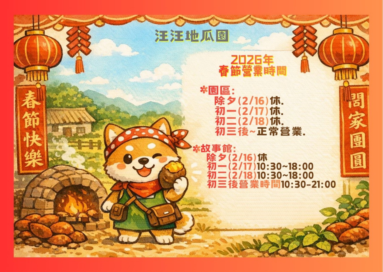 2026年汪汪地瓜園 年節營業時間公告